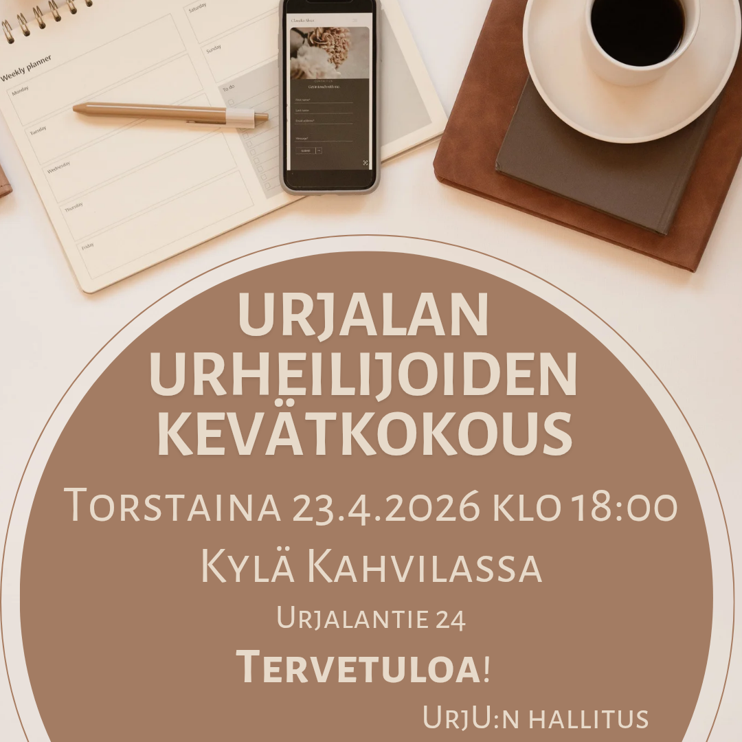 Urjalan Urheilijat ry:n sääntömääräinen kevätkokous pidetään torstaina 23.04.2026 klo 18:00